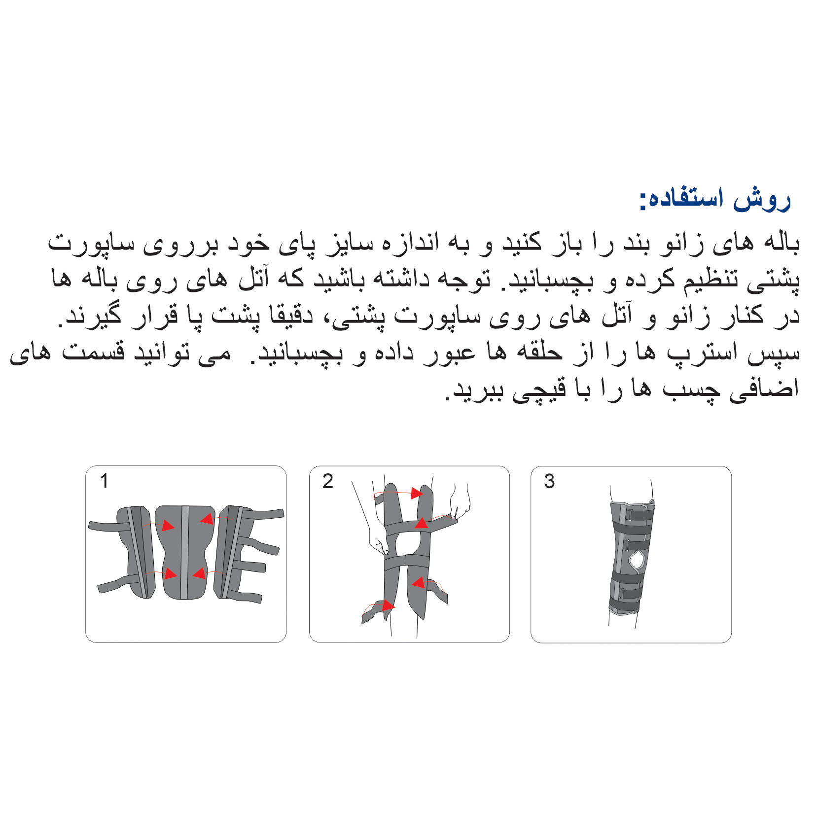 7-استرپ کشی-چسبان باعث فیت شدن زانوبند برروی بدن می شود.